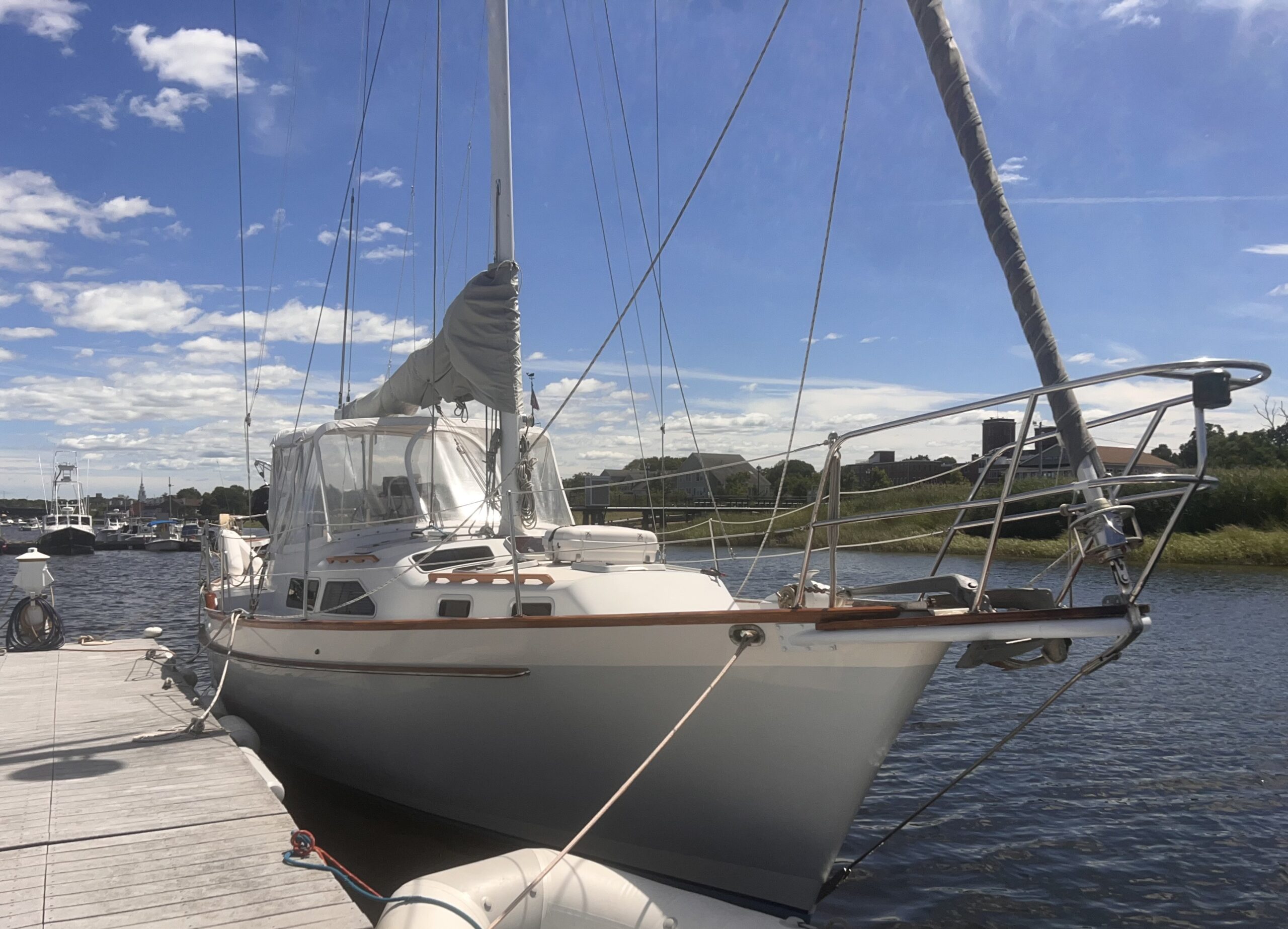 FREE SPIRIT, a 38’ Irwin Center Cockpit, blends solid performance with roomy comfort. Powered by a 50 hp Yanmar 4JH3 (8,300 hrs), a fully-battened mainsail and furling genoa, she’s equipped with updated Raymarine electronics and linear-drive autopilot. The isinglass-enclosed cockpit with wrap-around seating provides all-weather protection. Below, teak joinery frames a spacious salon, L-shaped Galley, forward V-berth, and aft master suite with private head—ideal for daysailing,